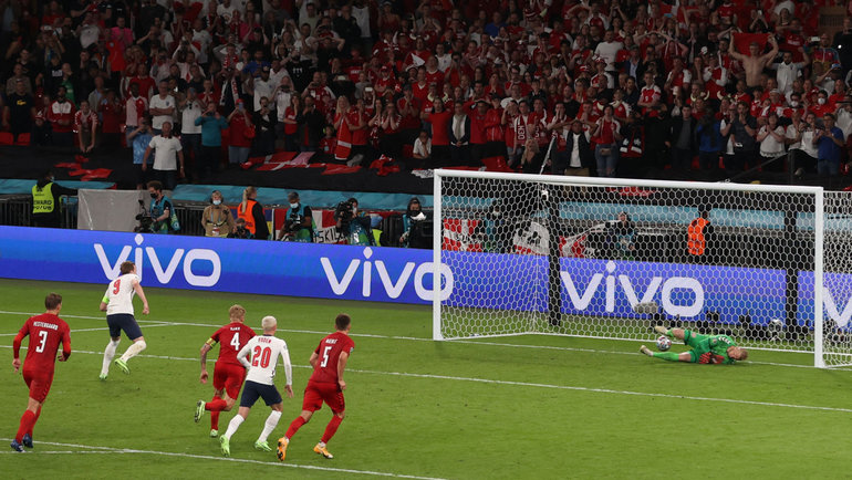 Обыграв Данию в дополнительное время, Англия впервые в своей истории вышла в финал Евро. Однако победу англичане добыли благодаря спорному пенальти. Рахим Стерлинг обыграл Йоакима Мехле, вошел в штрафную, где его окружили тот же Мехле и Матиас Йенсен. Арбитр Данни Маккели решил, что кто-то из них (или сразу оба) сбил Стерлинга, и назначил 11-метровый. Каспер Шмейхель отбил удар Харри Кейна, но тот оказался первым на добивании и послал мяч в сетку.