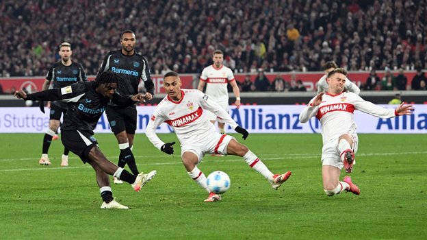 «Байер» на выезде обыграл «Штутгарт» в матче 26-го тура чемпионата Германии — 4:3.
