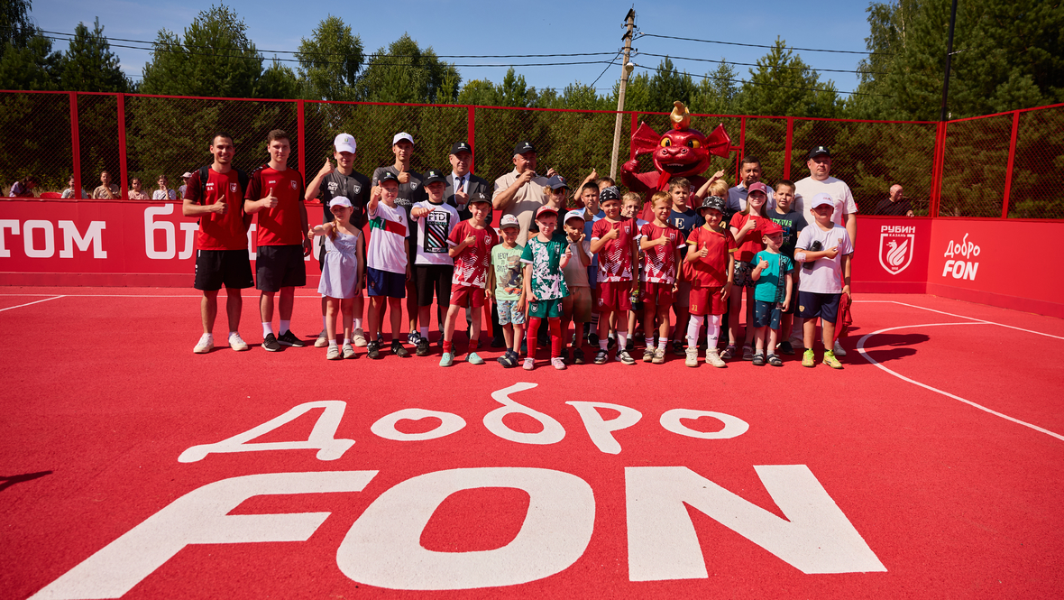Реконструкция спортивного объекта — совместный проект благотворительной программы ДоброFON и футбольного клуба «Рубин». Место выбрано не случайно. Здесь первые шаги в футболе делал защитник «Рубина» — Илья Рожков.