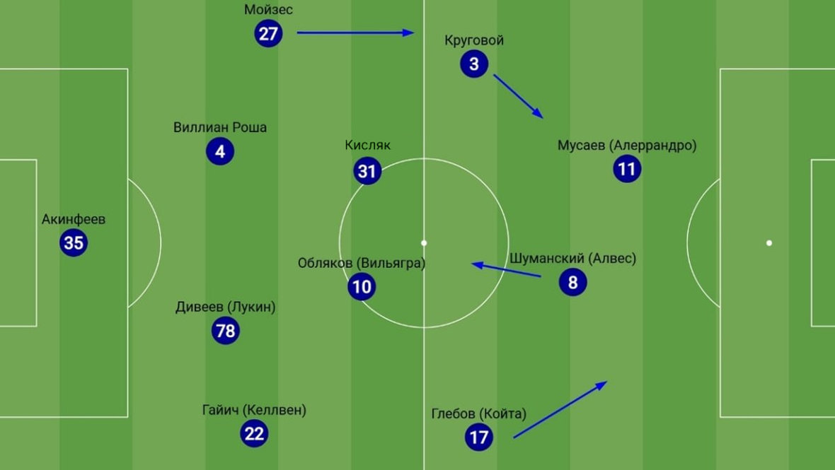 Данил оказался не готов к такой резкой трансформации. Но, в отличие от большинства фланговых защитников, которые ограничены в действиях с мячом и точно завалили бы данную задачу, есть ощущение, что Круговой в перспективе может справиться и потянуть объемную роль.