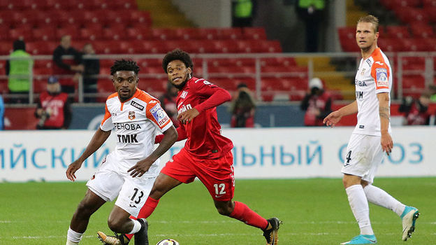 Петрюс БУМАЛЬ (слева) против нападающего "Спартака" ЗЕ ЛУИША. Фото Никита МЕДВЕДЕВСКИХ, ФК "Урал"------как то Зе Луиш очень уж на Луиза Адриано смахивает, СЭ не находите?